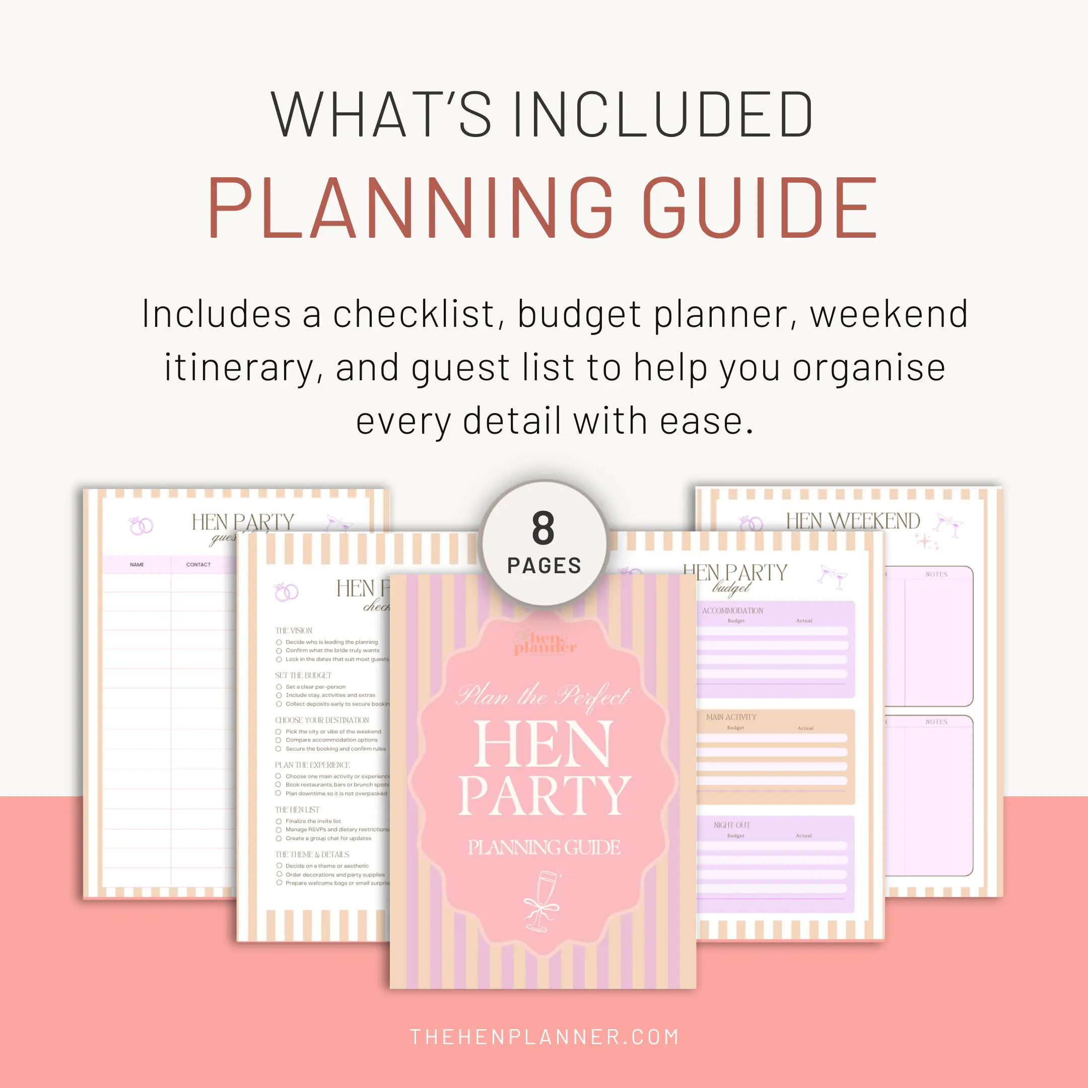 Hen Weekend Planning Guide Planner, Checklist, Budget, Itinerary & Guest List